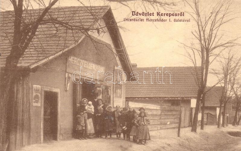 Beschreibung: Kerepes, utcakép és Herczfelder Izidor üzlete