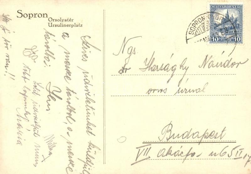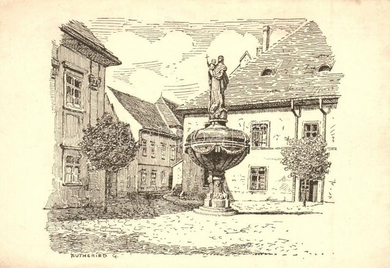 Sopron, Orsolya tér, szobor. rézkarc / etching s: Rutheried https://www.darabanth.com/de/30-Gross-Auktion/30.1/Ansichtskarten/Ungarn~12505/Sopron-Orsolya-ter-szobor-rezkarc-etching-s-Rutheried~II1862653
