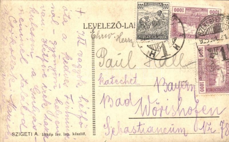 Beschreibung: Székesfehérvár, Ferenc József tér és nőnevelde, templom. Szigeti A. látkép lev. lap. készítő (EK)