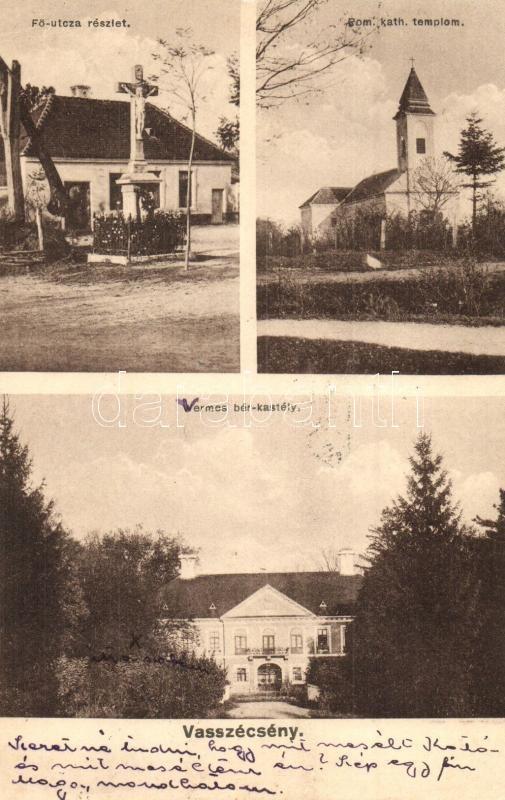 Vasszécseny, Vermes bér-kastély, Római katolikus templom, Fő utca https://www.darabanth.com/de/30-Gross-Auktion/30.1/Ansichtskarten/Ungarn~12505/Vasszecseny-Vermes-ber-kastely-Romai-katolikus-templom-Fo-utca~II1862821
