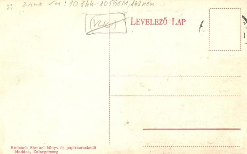 Beschreibung: Zalaegerszeg, Városháza, Garai Lipót, Neufeld Izidor, Heincz üzletei, Breisach Sámuel papírkereskedése és saját kiadása