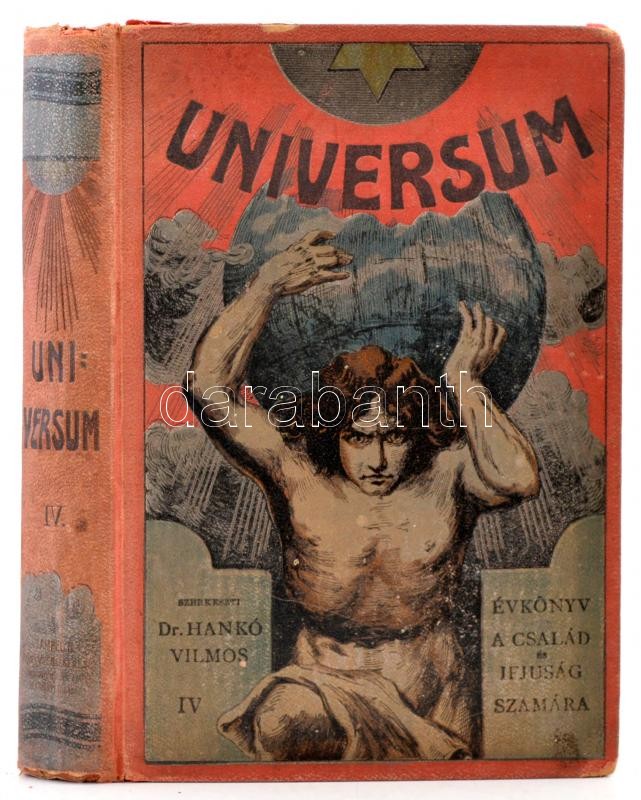 Universum: Évkönyv a család és az ifjúság számára. IV. kötete. Vadász és útleírásokkal. Szerk. Dr. Hankó Vilmos. Bp.,1909, Lampel R. (Wodianer F. és Fiai Rt.), IV+384 p. Kiadói festett, illusztrált, egészvászon-kötésben, kopottas borítóval, laza fűzéssel. A szerkesztő, Dr. Hankó Vilmos (1854-1923) által dedikált Rákosi Viktor (1860-1923) országgyűlési képviselő, író, újságíró részére. "Nagyságos Rákosi Viktor országgyülési képviselő úrnak tisztelettel és hálával. Dr. Hankó Vilmos."