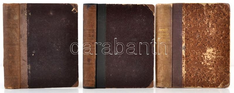 Horváth Mihály: Magyarország függetlenségi harcának története 1848-1849-ben. I-III. kötet. Bp.,(1871)-1872,Ráth Mór, VIII+535+4+539+IV+532 p. Második kiadás. Korabeli félvászon-kötés, kettő kötet festett lapélekkel, kopott borítóval, ajándékozási sorokkal, intézményi és névbélyegzőkkel.
