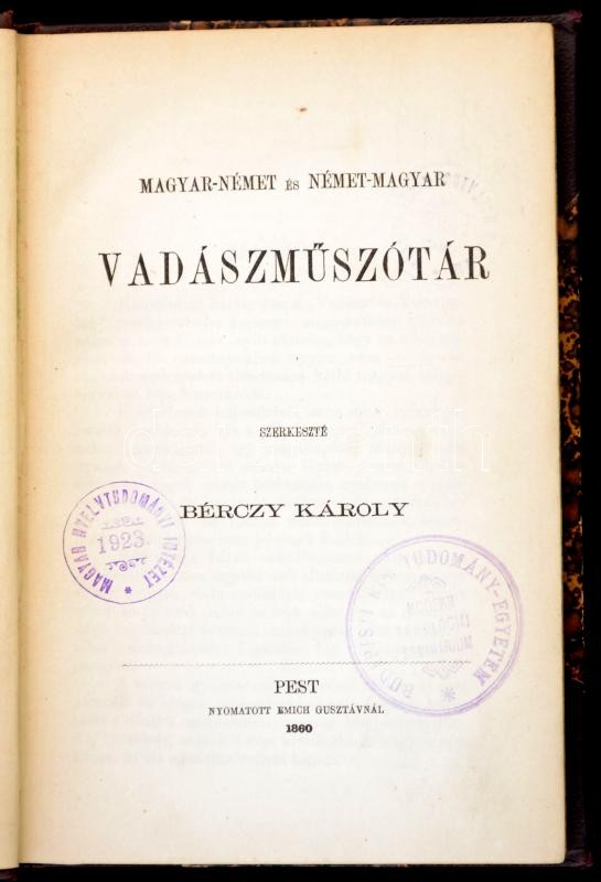 Magyar-német és német-magyar vadászműszótár. Szerk.: Bérczy Károly. Pe... https://www.darabanth.com/de/30-Gross-Auktion/30.1/Bucher/Bucher-Jagd~12160/Magyar-nemet-es-nemet-magyar-vadaszmuszotar-Szerk-Berczy-Karoly-Pest-1860-Emich-GusztC3~II1835759