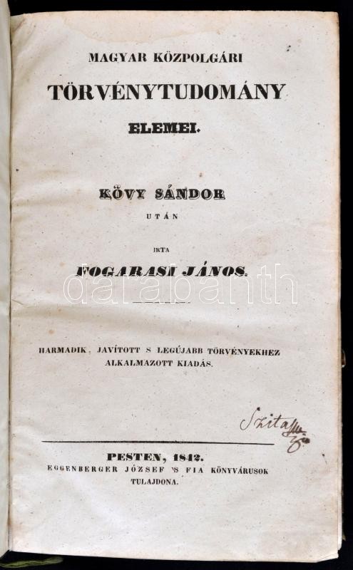 Fogarasi János: Magyar közpolgári törvénytudomány elemei. Kövy Sándor után írta: - -. Pest, 1842,