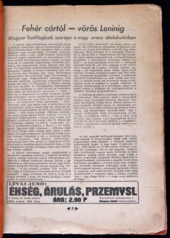 Lévai Jenő: Fehér cártól a vörös Leninig. Magyar hadifoglyok szenvedései Oroszországban. A külső borítékot Kner Albert rajzolta. Bp.,é.n.,Magyar Hétfő, (Stádium-ny.) Kiadói papírkötés, részben felvágatlan lapokkal, foltos borítóval. Ritka!
