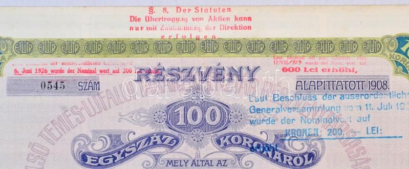 Temes-Újfalu 1908. "Első Temes-Újfalui Takarékpénztár Részvénytár... https://www.darabanth.com/de/30-Gross-Auktion/30.1/Numismatik/Aktien-Tickets-Notgeld-aus-Papier-und-Metal~12150/Temes-Ujfalu-1908-Elso-Temes-Ujfalui-Takarekpenztar-Reszvenytarsasag-nevre-szolo-re~II1861547