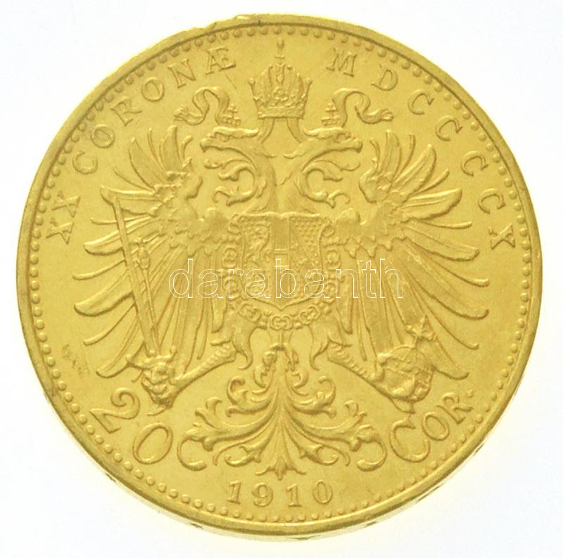 / Austria 1910. 20 Corona Au "Franz Joseph I" (6,77g/0.900) C:AU,XF small edge error