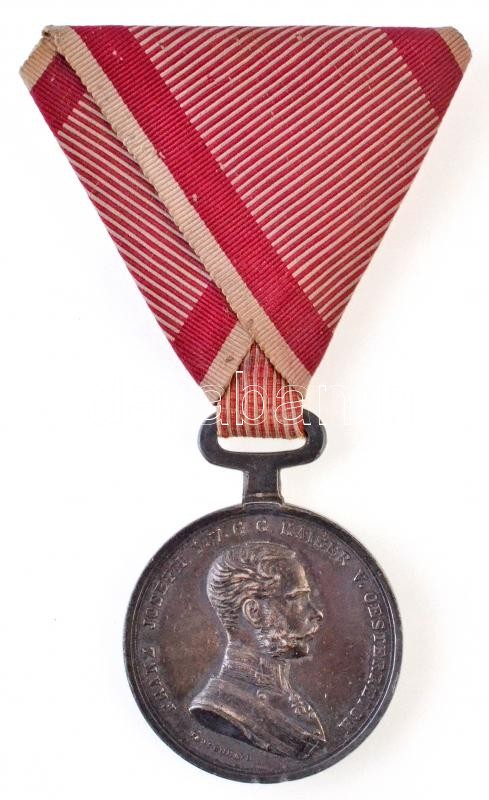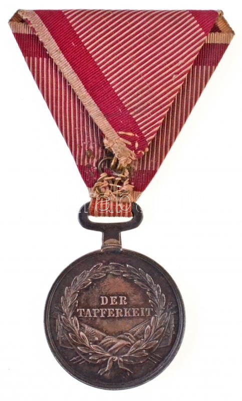 1866. "Ferenc József II. osztályú Ezüst Vitézségi Érem" jelzetlen Ag kitüntetés ovális füllel, mellszalaggal. Szign.: Tautenhayn T:1-,2 patina, ph. / Hungary 1866. "Silver Gallantry Medal, IInd Class" Ag decoration without hallmark, with oval ear and ribbon. Sign.: Tautenhayn C:AU,XF patina, edge error NMK: 133.