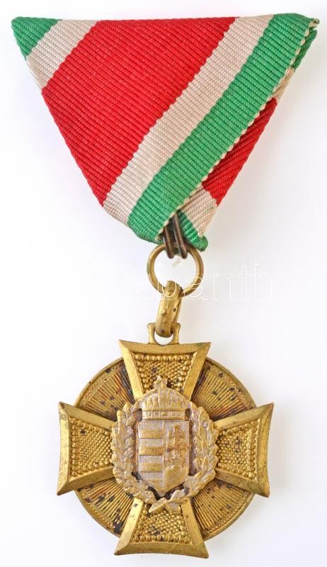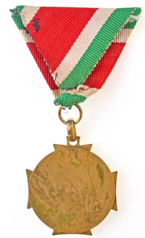 Hungary 1923. "Medal for Long Service for the Soldiers" Br decoration with silver plated coat of arms, with ribbon (32mm) C:XF silver plating worn, repaired ring