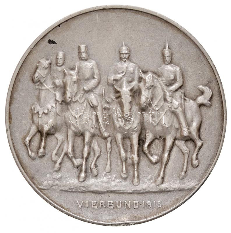 Német Birodalom 1916. "Világháború 1914-1916 / Négyes Szövetség 1915 - V. Mehmed, Ferenc József, II. Vilmos, I. Ferdinánd" jelzett Ag érem "BALL" gyártói jelzéssel (17,19g/0.990/34mm) T:2,2- ph. / German Empire 1916. "Weltkrieg 1914-1916 / Vierbund 1915 - Mehmed V, Franz Joseph, Wilhelm II, Ferdinand I" hallmarked Ag medallion with makers mark "BALL" (17,19g/0.990/34mm) C:XF,VF edge error