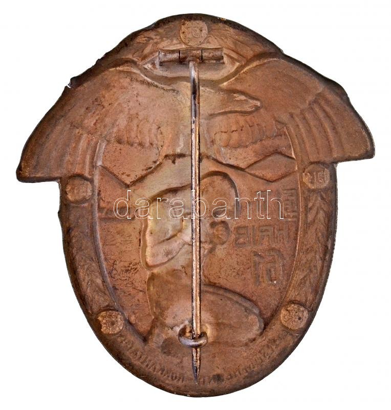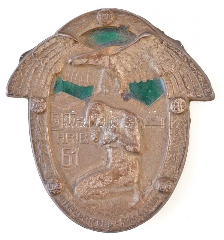 Austro-Hungarian Monarchy ~1918. "61st Infantry Regiment - Invalids Fund" hallmarked (on obverse and on pin) Ag badge with "Horvát" makers mark, with vertical pin (18,83g/0.900/60x58mm) C:XF damaged edge