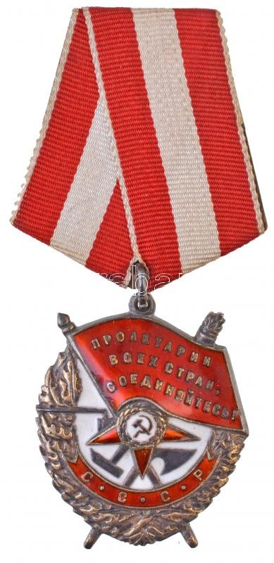 Szovjetunió ~1944. "Vörös Zászló érdemrend" jelzetlen Ag kitüntetés, zománcozott, mellszalaggal, hátoldalán sorszám "134285" (45x38mm) T:2 aranyozás kopott /