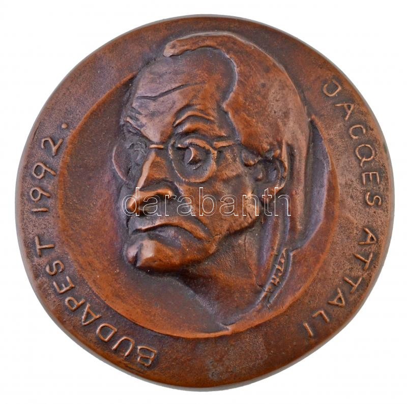 1992. "Jacques Attali - Budapest" Br plakett (463,50g/127mm) T:1-,2 / Hungary 1992. "Jacques Attali - Budapest" Br plaque (463,50g/127mm) C:AU,XF