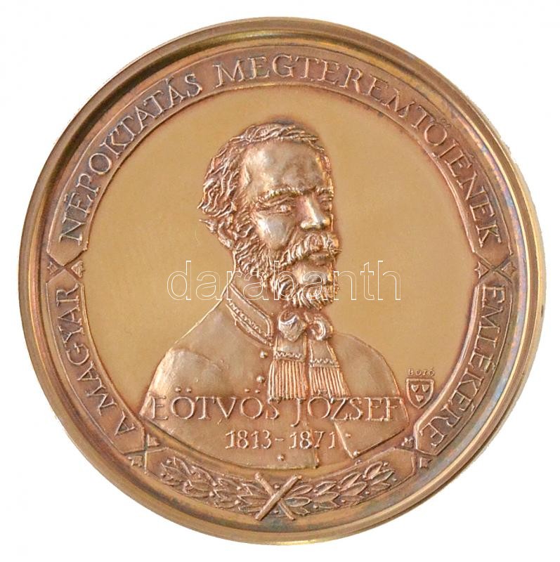 Bozó Gyula (1913-2004) DN "Eötvös József - A Magyar Népoktatás megteremtőjének emlékére / Adományozta a Pedagógusok Szakszervezete" bronz fokozat? emlékérem dísztokban (37,2g/42,5mm) T:2 (eredetileg PP) / Hungary ND "József Eötvös - Founder of the Hungarian Public Education" bronze grade? commemorative medallion in case. Sign.: Gyula Bozó (37,2g/42,5mm) C:XF (originally PP)