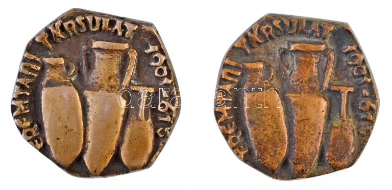 Csúcs Ferenc (1905-1999) 1961. "Éremtani Társulat 1901-61 / Régi pénz - Gyűjtőnek eml." kétféle ötvözet és Br emlékérem pár, peremükön sorszámmal (94,39g és 78,09g/~47-50mm) T:2 patina / Hungary 1961. "Éremtani Társulat 1901-61 / Régi pénz - Gyűjtőnek eml. (Numismatic Society - Memory for collectors)" alloy and Br commemorative medals, both numbered on edge. Sign.: Ferenc Csúcs (94,39g és 78,09g/~47-50mm) C:XF patina
