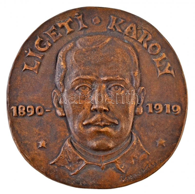 / Hungary ~1919. "Ligeti Károly 1890-1919" one-sided Br plaque. Sign.: Zoltán Olcsai Kiss (704g/~160mm) C:XF patina