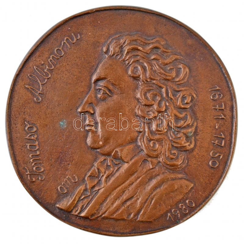 Osváth Mária (1921-1998) 1980. "Tomaso Albinoni 1671-1750" egyoldalas Br plakett (253,48g/105mm) T:1- / Hungary 1980. "Tomaso Albinoni 1671-1750" one sided Br plaque (253,48g/105mm) C:AU
