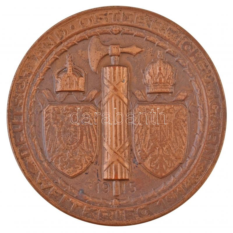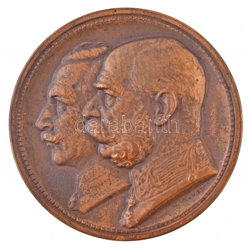 Osztrák-Magyar Monarchia 1915. "Ferenc József - II. Vilmos / Németország - Ausztria Magyarország - Világháború 1914" Br propaganda emlékérem, "M&W St." gyártói jelzéssel (64,93g/54,5mm) T:1- / Austro-Hungarian Monarchy 1915. "Franz Joseph - William II / Deutschland - Österreich Ungarn - Weltkrieg 1914" Br propaganda commemorative medallion, with "M&W St." maker's mark (64,93g/54,5mm) C:AU