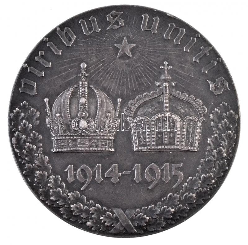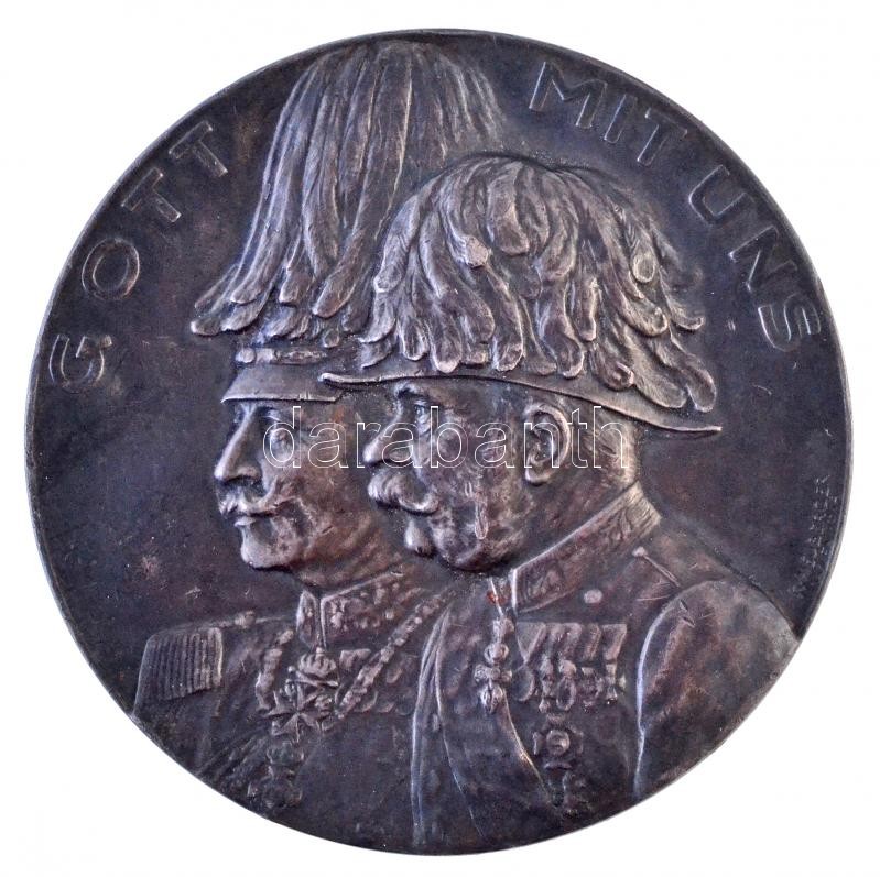 Osztrák-Magyar Monarchia 1915. "Gott mit uns / Viribus unitis 1914-1915" Ferenc Józsefet és II. Vilmost ábrázoló, peremén jelzett Ag emlékérem. Szign.: Rudolf Neuberger (102g/60mm) T:1-,2 kis ph. / Austro-Hungarian Monarchy 1915. "Gott mit uns / Viribus unitis 1914-1915" hallmarked on edge Ag commemorative medal with Franz Joseph and Wilhelm II. Sign.: Rudolf Neuberger (102g/60mm) C:AU,XF small edge error
