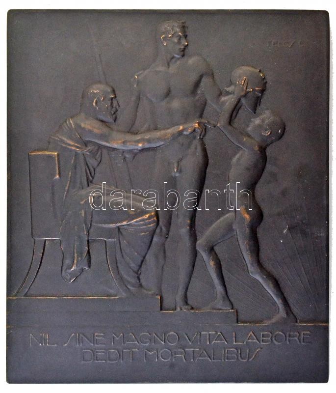 Telcs Ede (1872-1948) 1924. "Az élet semmit sem adott az emberiségnek nagy erőfeszítések nélkül" Br plakett latin nyelvű Horatius idézettel, hátoldalán csavar, akasztóval. "NIL SINE MAGNO VITA LABORE DEDIT MORTALIBUS" (~1766g/297x256mm) T:2 patina / Hungary 1924. "Life grants nothing to us mortals without hard work" Br plaque with Latin language citation of Horace, with screw and hanger on back. "NIL SINE MAGNO VITA LABORE DEDIT MORTALIBUS". Sign.: Ede Telcs (~1766g/297x256mm) C:XF patina HP 6164var