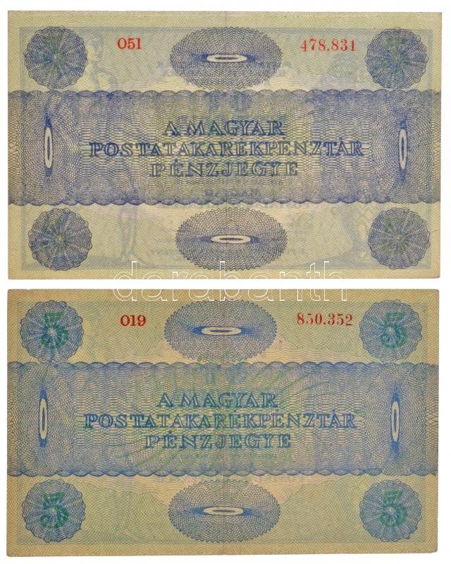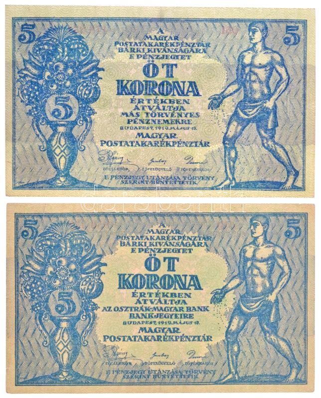 Hungary 1919. 5 Korona "MÁS TÖRVÉNYES..." + 5 Korona "OSZTRÁK-MAGYAR BANK BANKJEGYEIRE" C:XF,F fine paper