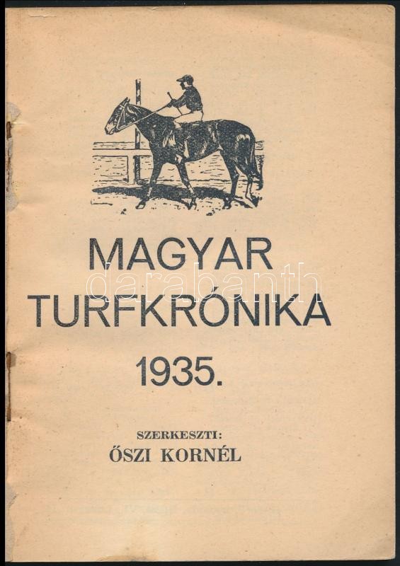 1935 Magyar Turfkrónika, Szerk.: Őszi Kornél, (Bp.), Magyar Turf, 147 ... https://www.darabanth.com/de/300-Fernauktion/300.0/Andere-Sammelgebiete/Drucksachen~27/1935-Magyar-Turfkronika-Szerk-Oszi-Kornel-Bp-Magyar-Turf-147-p-Kiadoi-papirboritoba~II1605720