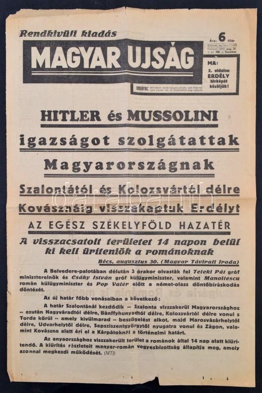 1940 A Magyar Újság rendkívüli kiadása a II. Bécsi döntésről. https://www.darabanth.com/de/300-Fernauktion/300.0/Andere-Sammelgebiete/Drucksachen~27/1940-A-Magyar-Ujsag-rendkivuli-kiadasa-a-II-Becsi-dontesrol~II1607971