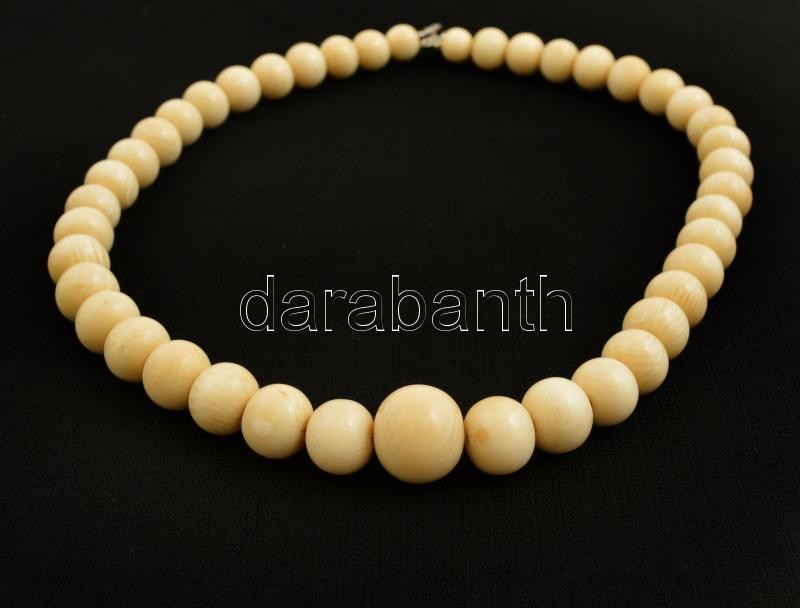 Beschreibung: Csont gyöngysor, jelzett ezüst(Ag) kapoccsal, h: 38 cm
