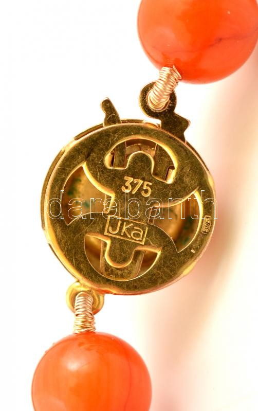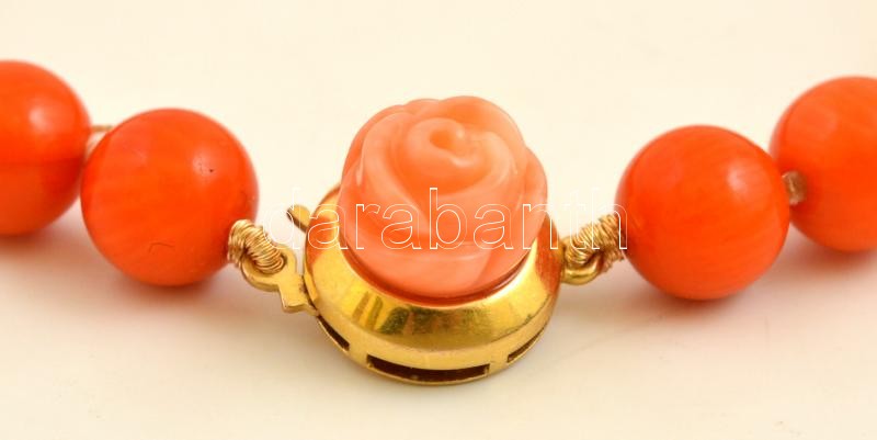 Beschreibung: Korall nyaklánc, festett, arany(Au) 9K kapoccsal, jelzett, h: 41 cm