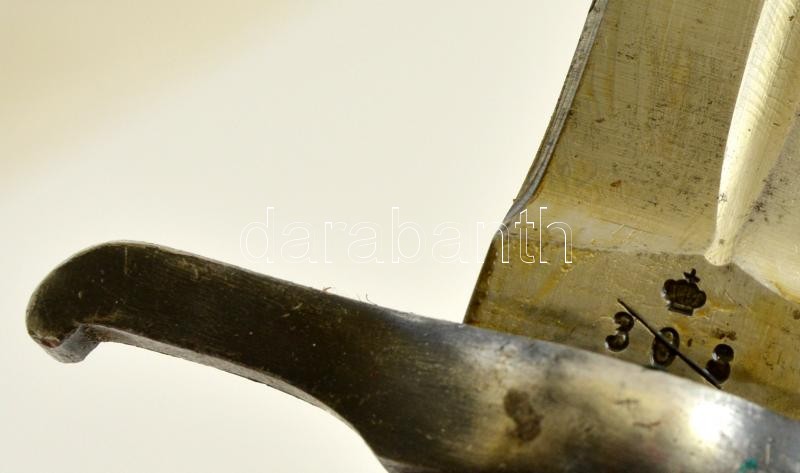 cca 1896 M1896 svéd gyalogsági szurony, jelzett, hüvellyel, bőr tokban, pengehossz: 21 cm, teljes hossz: 33 cm / cca 1896 M1896 Swedish infantry bayonet, with hallmark, with scabbard and leather bayonet frog, blade length: 21 cm, full length: 33 cm