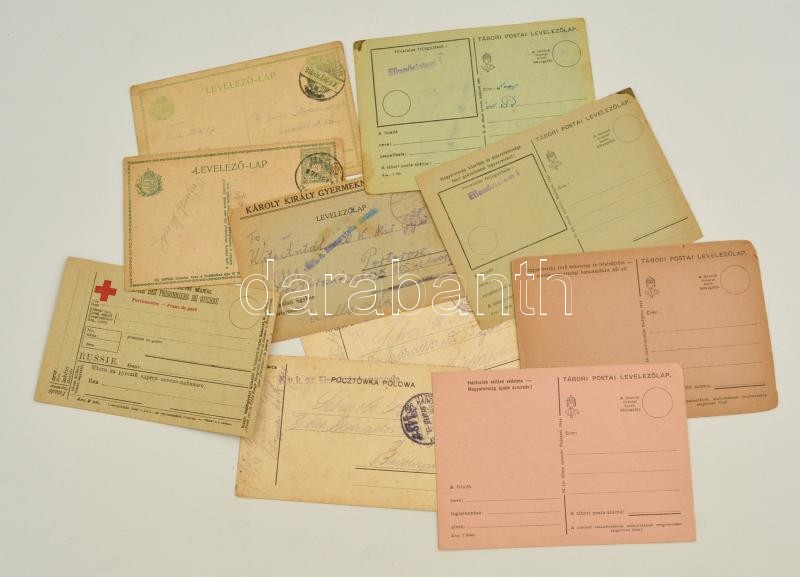 Beschreibung: cca 1914-1942 Használt és kitöltetlen tábori postai levelezőlapok, 9 db