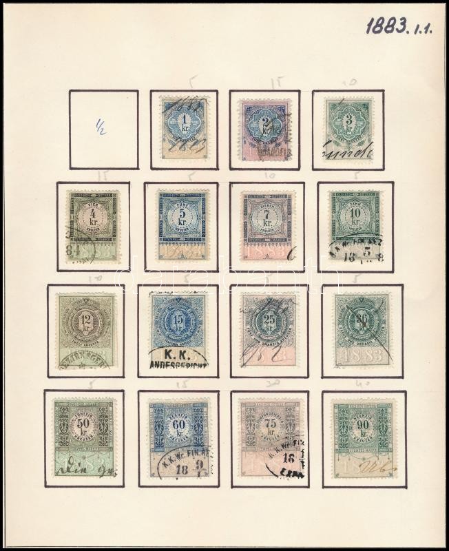 Beschreibung: Ausztria 1883 Sorozat 6 hiánnyal 2 albumlapon (7.800)