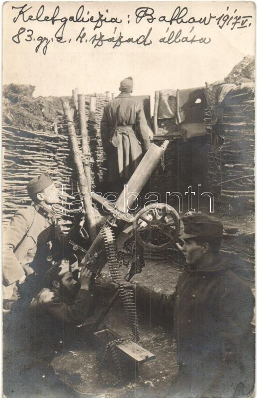 1917 Kelet-Galícia. Géppuska állás a lövészárokban, 83. gy. e. 4. század / WWI Galicia. K.u.K. machine gun post in the trenches with artillerymen. photo (EK)