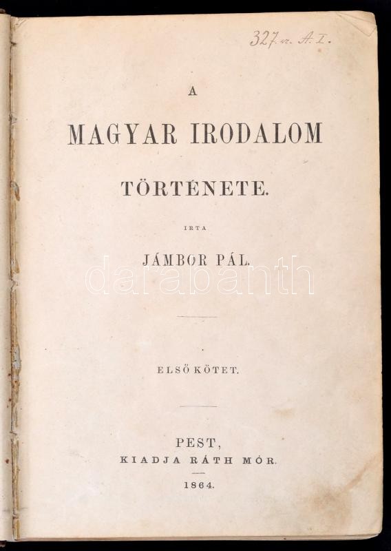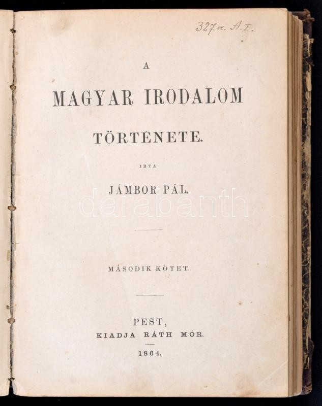 Jámbor Pál: A magyar irodalom története, I-II. kötet. Pest, 1864, Ráth... https://www.darabanth.com/de/300-Fernauktion/300.0/Bucher/Bucher-Andere-kuriositaten~200016/Jambor-Pal-A-magyar-irodalom-tortenete-I-II-kotet-Pest-1864-Rath-Mor-Atkotott-kopo~II1610427