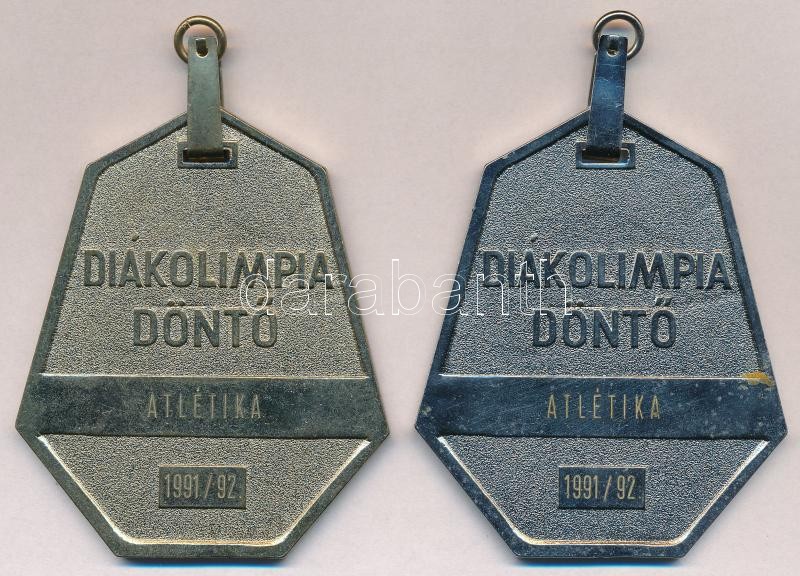 1991. "Diákolimpia Döntő - Atlétika 1991/92" aranyozott és ezüstözött fém díjérem füllel (~78mm) (2x) T:2