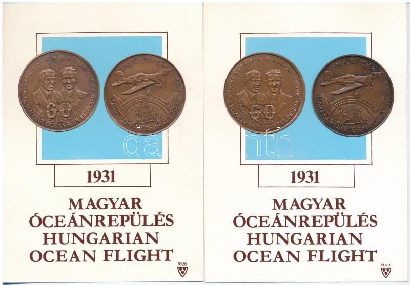 Beschreibung: Bozó Gyula (1913-2004) 1991. "60 éves a magyar óceánrepülés Endresz György - Magyar Sándor / Harbour Grace - Bicske" emlékérem Br lemeze díszlapon (2x)