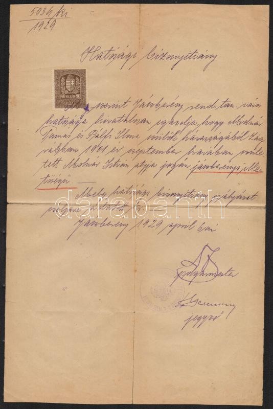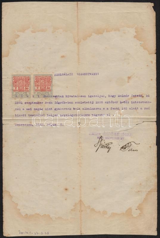 1914-1947 Vegyes okmány tétel (segédlevél, bizonyítvány, némelyiken il... https://www.darabanth.com/de/301-Fernauktion/301.0/Andere-Sammelgebiete/Dokument~17/1914-1947-Vegyes-okmany-tetel-segedlevel-bizonyitvany-nemelyiken-illetekbelyegekkel-ko~II1618683