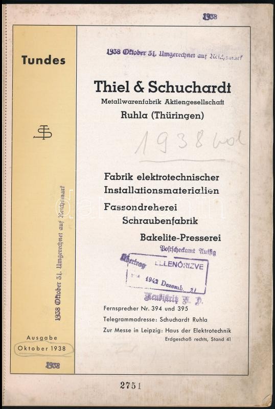 1938 Thiel&Schuchardt Metallwerenfabrik Aktiengesellschaft prospektusa, német nyelven. Papírkötés, német nyelven, 53 p./