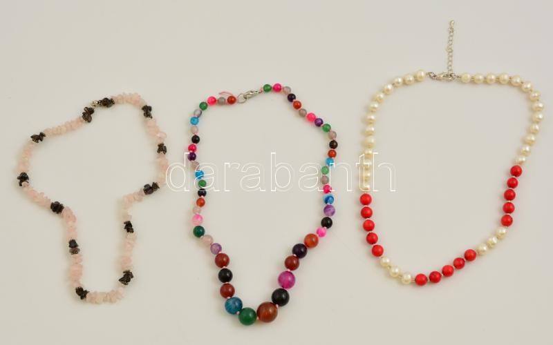Beschreibung: 3 db gyöngy, korall, rózsakvarc elemekkel díszített mutatós nyaklánc