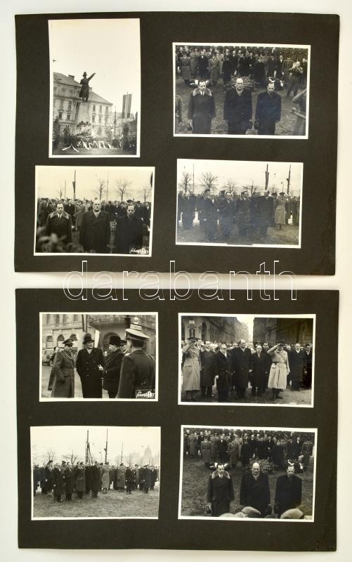 Beschreibung: 1948 Dinnyés Lajos és társai a Bem József-emlékműnél, 8 db albumlapra ragasztott fotó, 9x12 cm