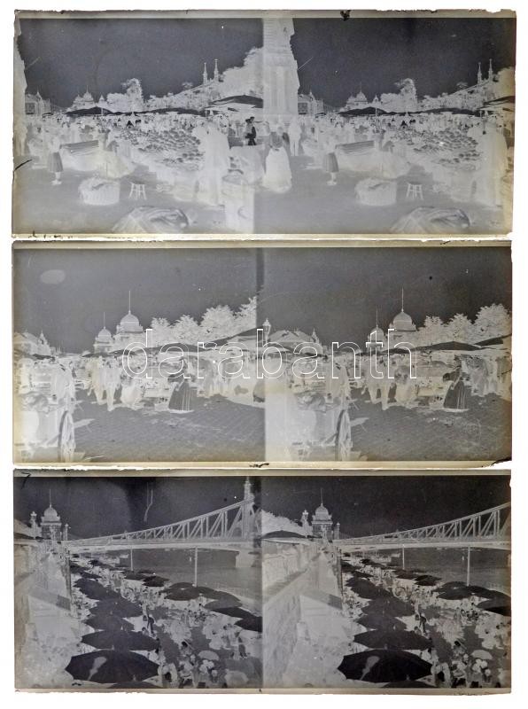 Beschreibung: cca 1922 Budapest, Vámház téri nagypiac, 3 db sztereo üveglemez negatív, 6x13 cm