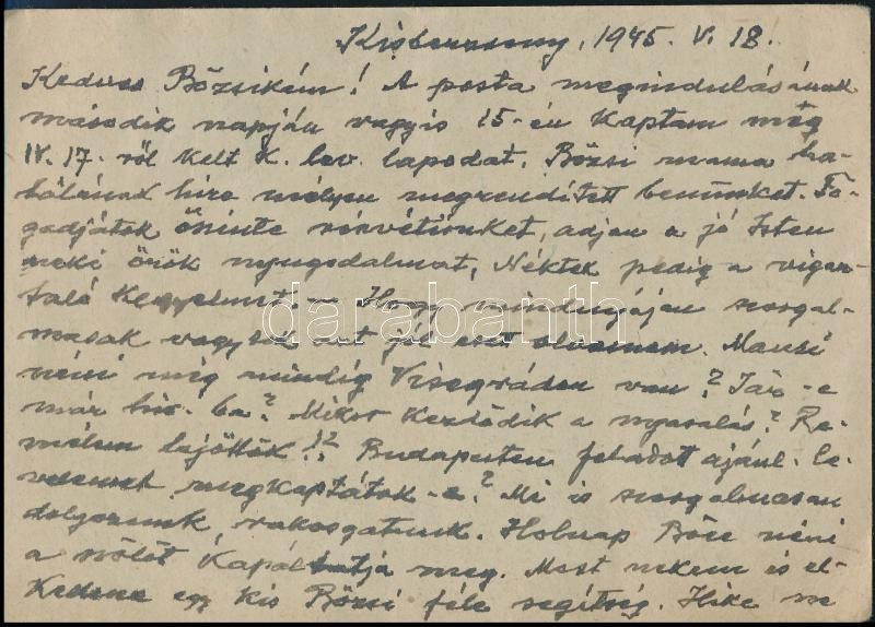 1945 Dörre Tivadar (1858-1932) festőművész Dörre Erzsébetnek címzett levelezőlapja