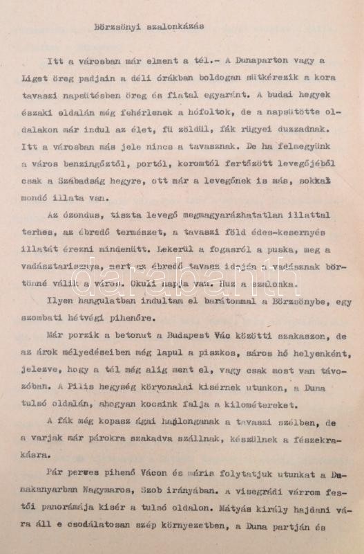 cca 1960 Ékes István "Vadásztörténetek" című visszaemlékezéseinek kézirata (megjelent [?]: Vadászkalandok - vadászemlékek. Bp., 1995), kézzel és géppel írt formában, (a kézzel írtból hiányzó 75-76. p. a gépiratban megvan), számos érdekes részlettel