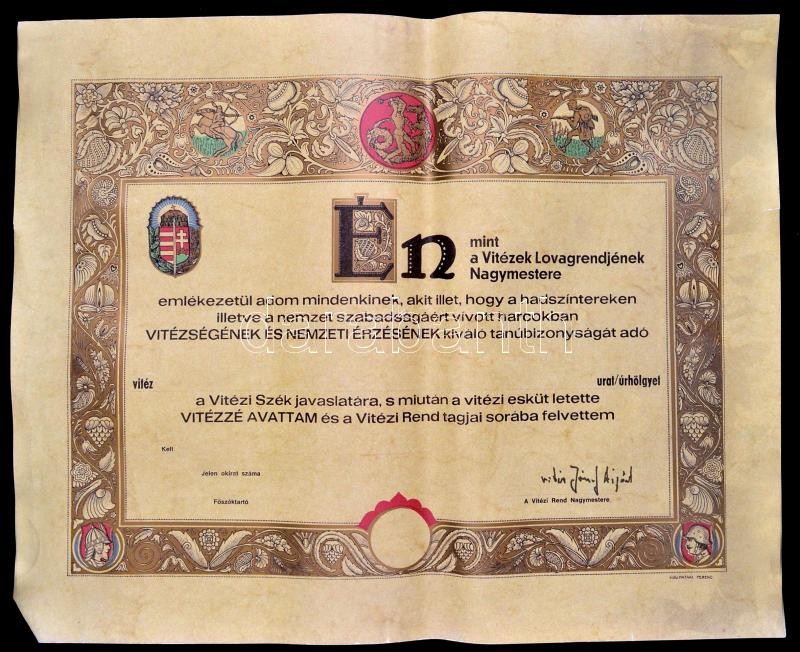 Modern Vitézi Rend oklevél. Kitöltetlen. 52x42 cm https://www.darabanth.com/de/301-Fernauktion/301.0/Andere-Sammelgebiete/Militaria~27/Modern-Vitezi-Rend-oklevel-Kitoltetlen-52x42-cm~II1620069