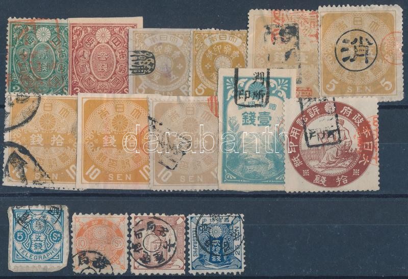 Beschreibung: Japán 15 db régi okmánybélyeg