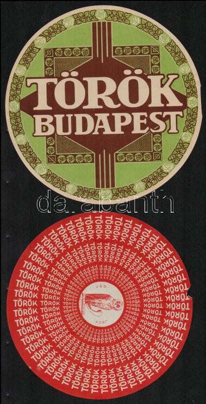 cca 1910-1920 Török [Gyógyszerész tulajdonát képező Galenus Csokoládé és Cukorkaárugyár] Budapest csomagolópapírja, 2 db, az egyiken kis sérülés, d: 15,5 és 16,5 cm.