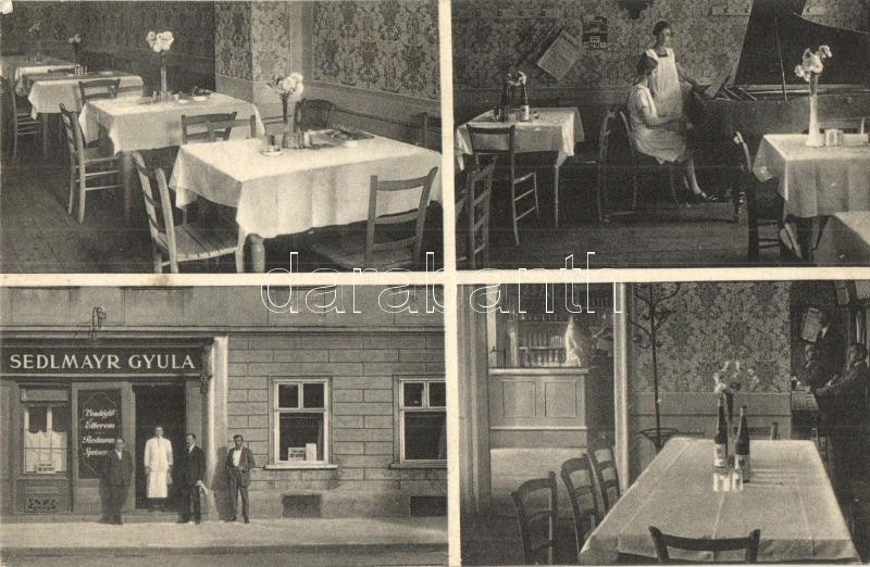 Beschreibung: Sopron, Sedmayr Gyula vendéglője és étterme, belsők, zongora. Stagl Ferenc kiadása (EK)