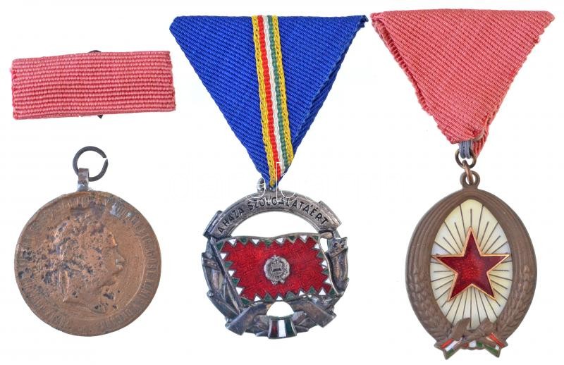 1964. "A Munka Érdemrend" bronz fokozata, Br kitüntetés szalagon, miniatűrrel és szalagsávval + 1964. "Haza Szolgálatáért Érdemérem" ezüst fokozata, ezüstözött Br kitüntetés mellszalagon + 1873. "Hadiérem" Br katonai érdemérem, javított füllel T:2-3-