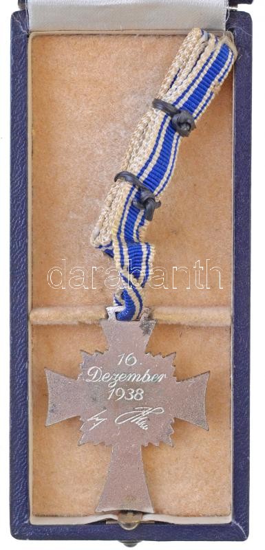 Német Harmadik Birodalom 1938. "Német Anyasági Kereszt, ezüst fokozat" zománcozott, ezüstözött Br kitüntetés szalaggal, "Friedrich Linden Lüdenscheid" jelzésű dísztokban T:2